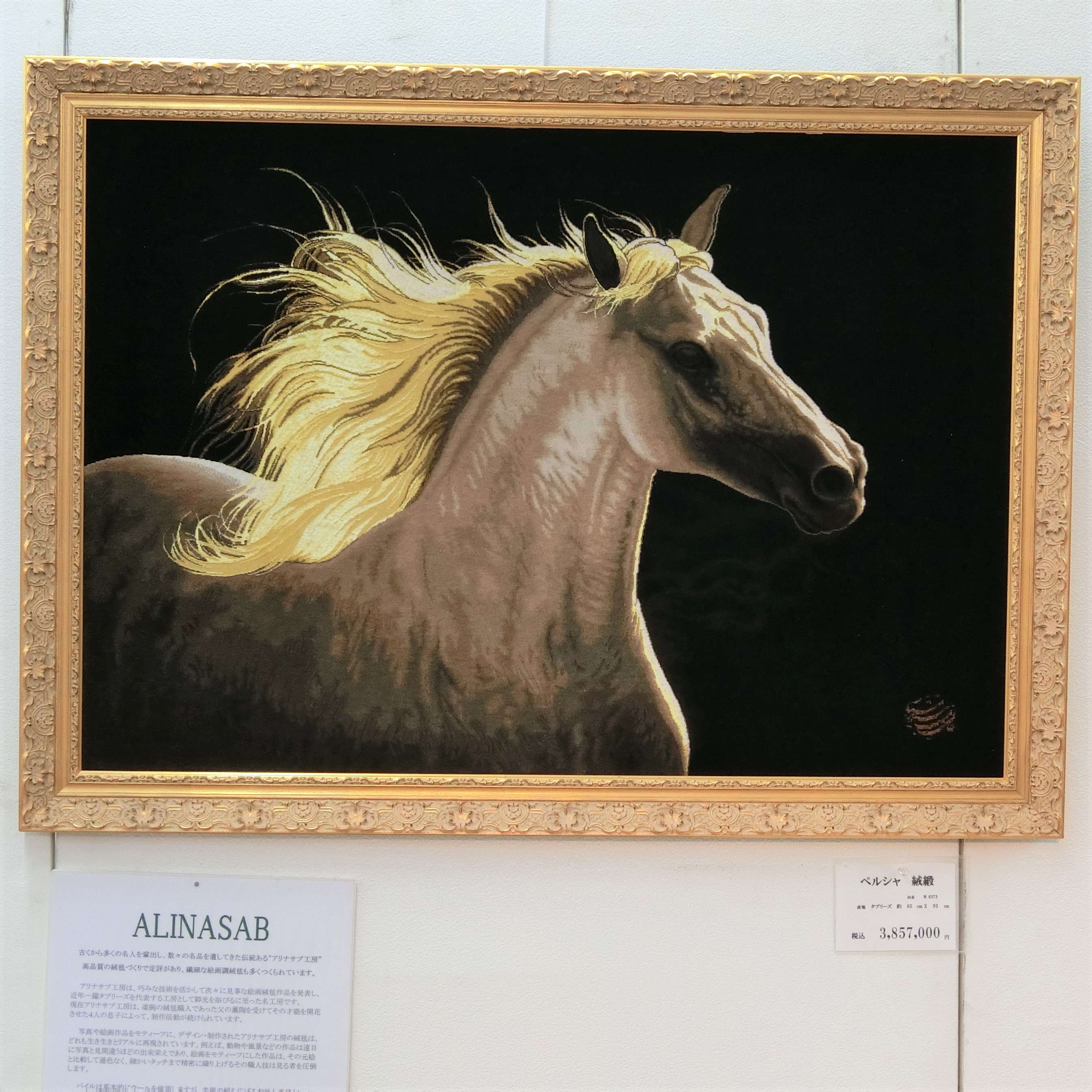 また絵画を織り上げた壁掛けラグや、有名工房が織り上げたサラブレットの一枚もございます。